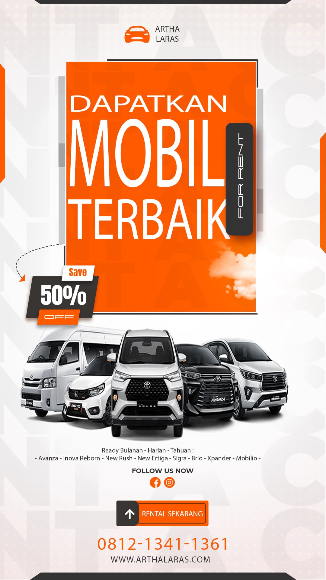 Artha Laras Rent adalah penyedia layanan rental mobil profesional yang melayani kebutuhan perusahaan dan perorangan di Seluruh Indonesia. Kami menghadirkan solusi sewa mobil harian, bulanan, hingga tahunan dengan kontrak fleksibel, armada terawat, serta sistem administrasi yang transparan dan terpercaya. Dengan komitmen pada kualitas layanan dan kepuasan pelanggan, Artha Laras Rent siap menjadi mitra transportasi jangka panjang yang aman, nyaman, dan profesional.